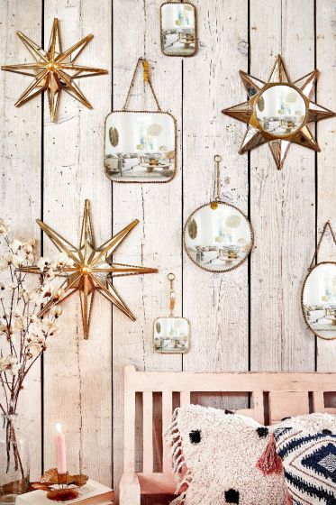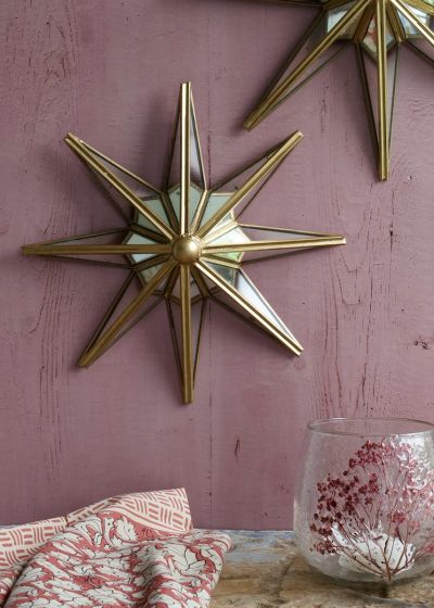 Specchio decorativo a forma di stella in ottone anticato lavorato a mano.